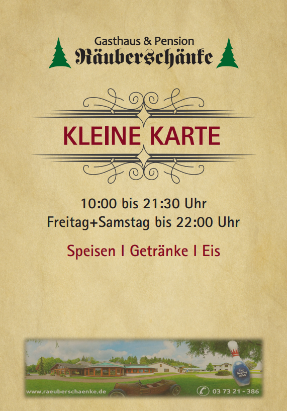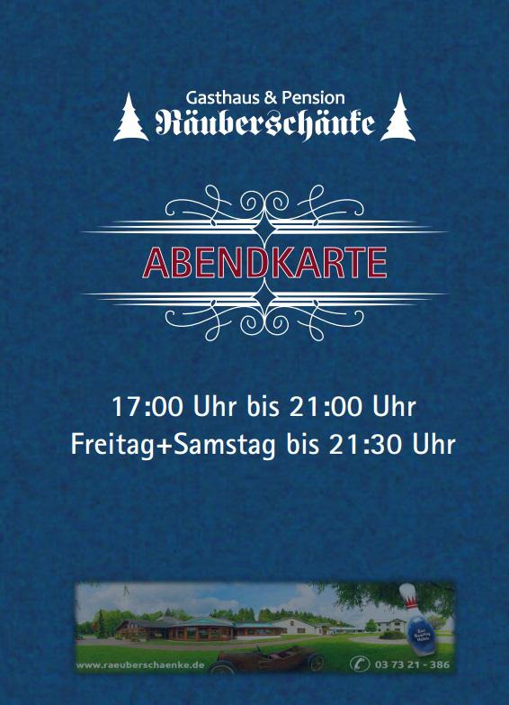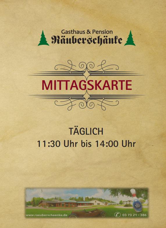 Gasthaus Räuberschänke • Zur Räuberschänke 25 • 09569 Oederan OT Hartha • Telefon: 03 73 21 - 386 bzw. 03 73 21 - 4272 Fax 03 73 21 - 8 78 90