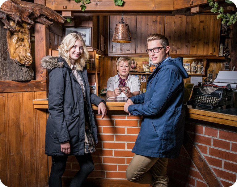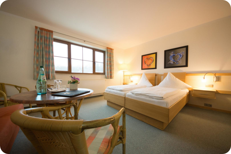 Unsere beliebte Pension überzeugt mit 30 modernen Zimmern sowie einem barrierefreiem Zimmer im direkt angebauten und per Laubengang verbundenen Hauptgebäude. Unser Haus Gretel im Nebengebäude erreichen Sie über einen 130m kurzen Fußweg.