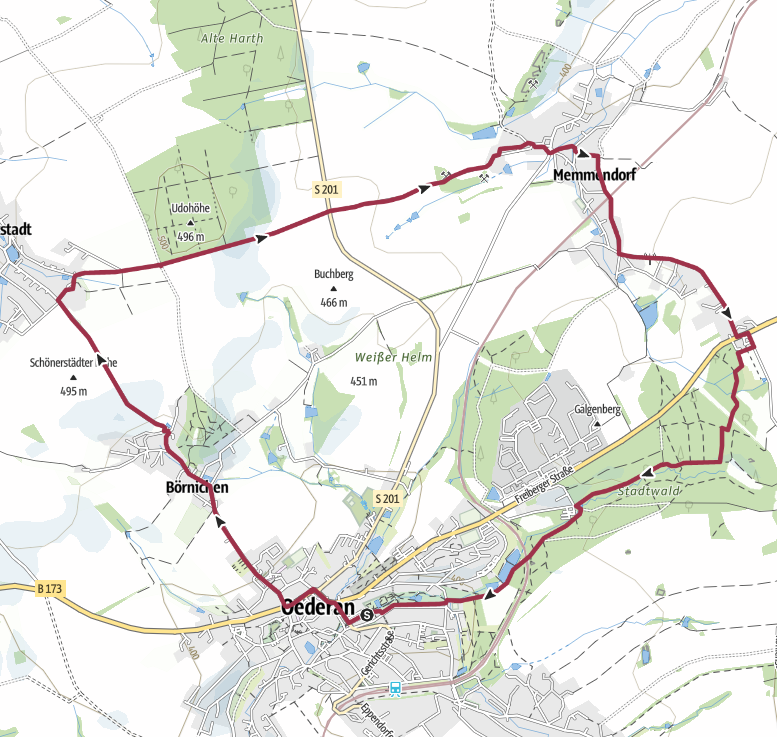 Sie startem am kleinen Erzgebirge in Oederan und finden durch die Altstadt bis zur Udohöhe.
