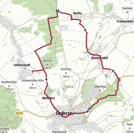 Anschließend steigen Sie ab nach Oederan und finden durch den Stadtwald, Memmendorf und Hartha zurück zur Räuberschänke.