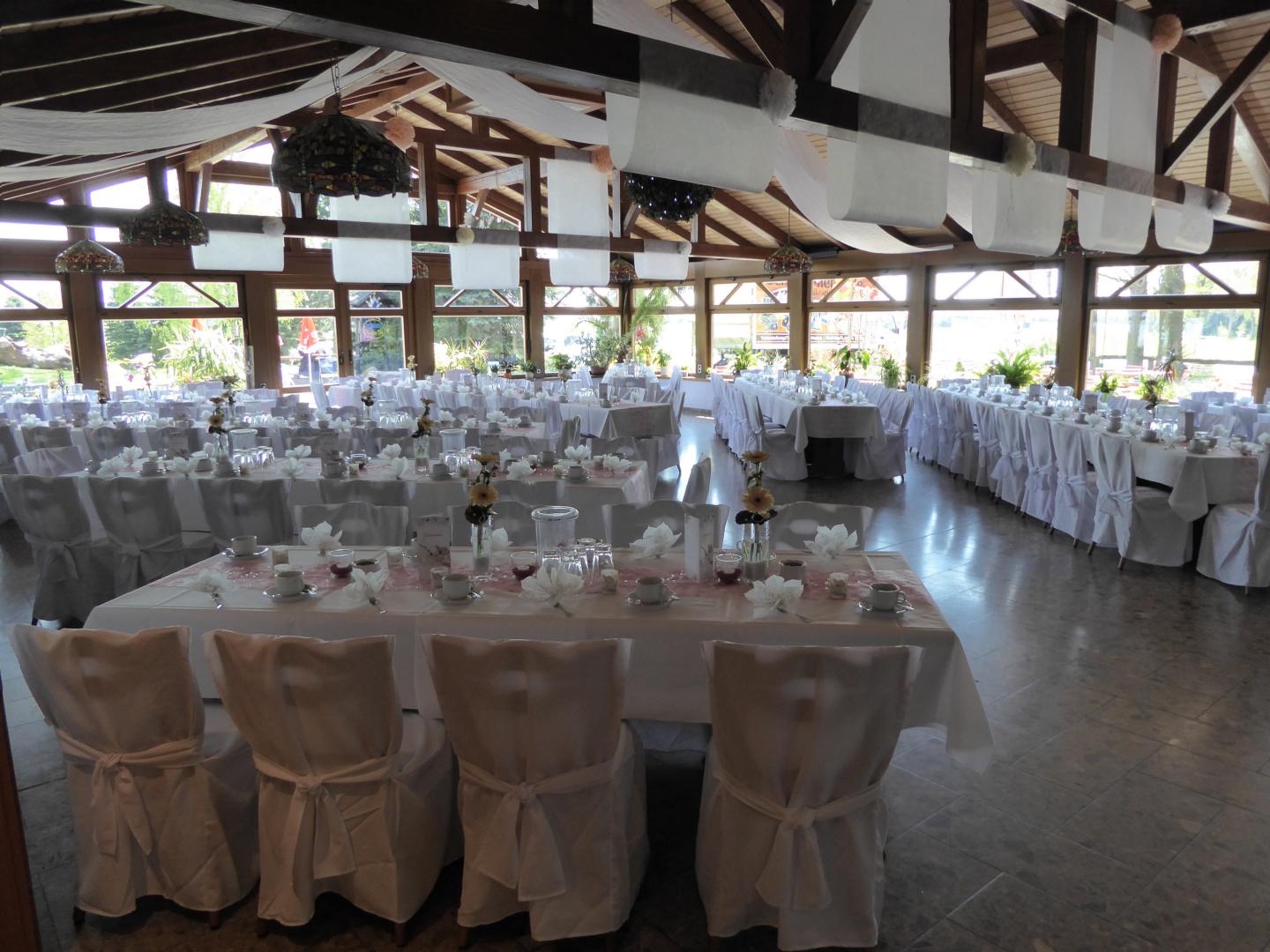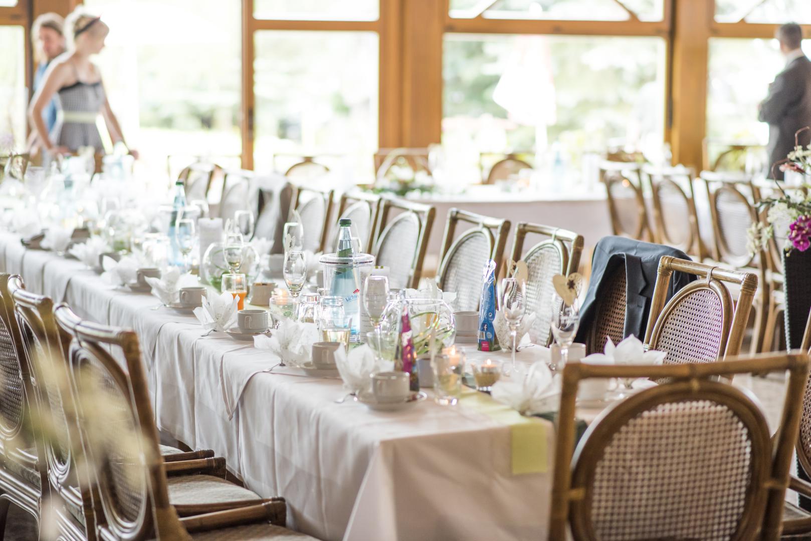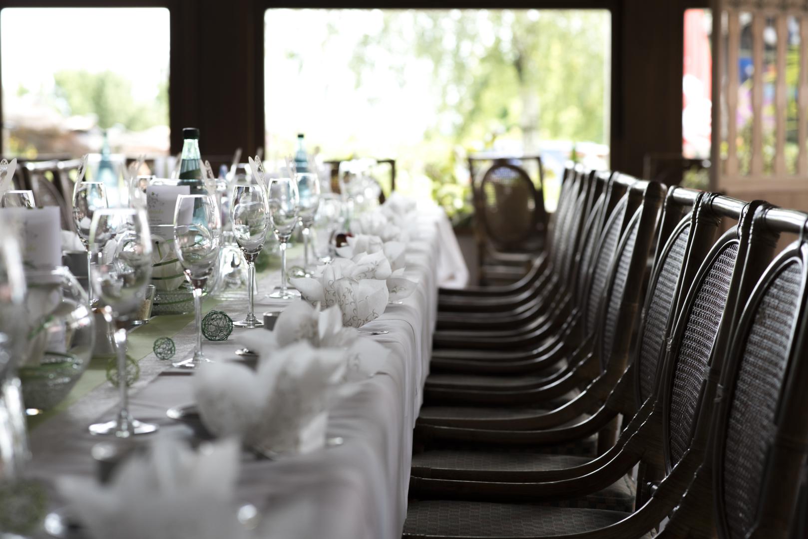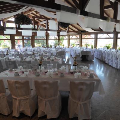 Lichtdurchflutet, hell und freundlich strahlt dieser Raum ein besonderen Flair aus und ist beliebt für Hochzeits- und größere Familienfeiern.