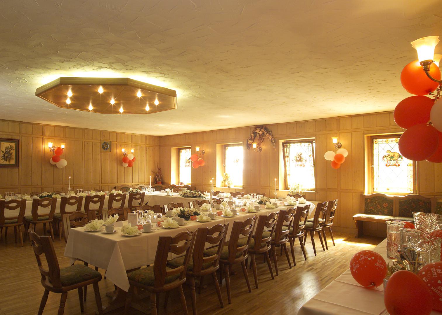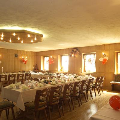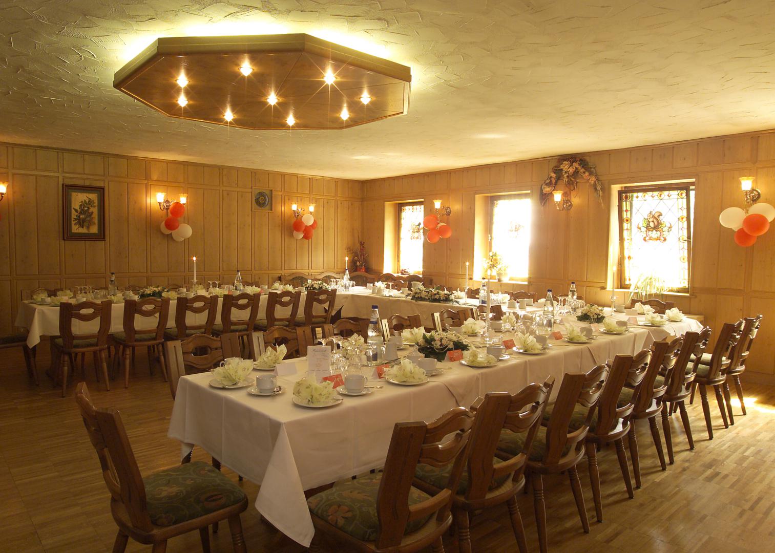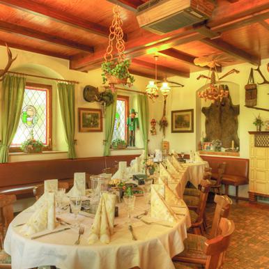 Wer in nostalgischem und traditionellen Ambiente unter Hirschgeweih und Holzbalkendecke feiern möchte - die Gaststube lädt Sie ein!
